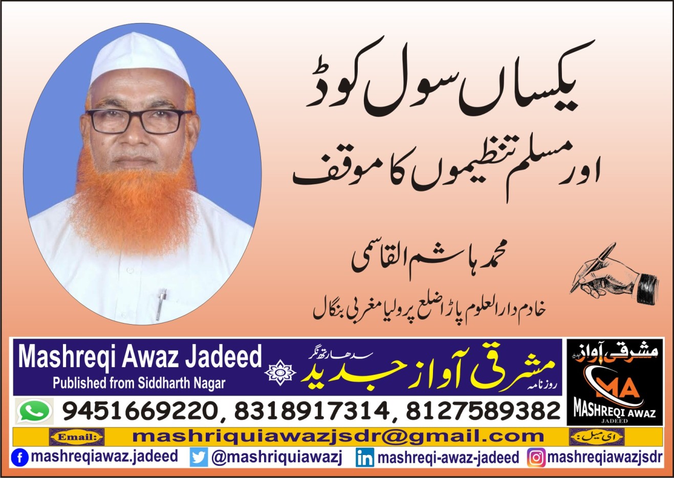 محمد ہاشم القاسمی (خادم دارالعلوم پاڑا ضلع پرولیا مغربی بنگال. رابطہ 9933598528