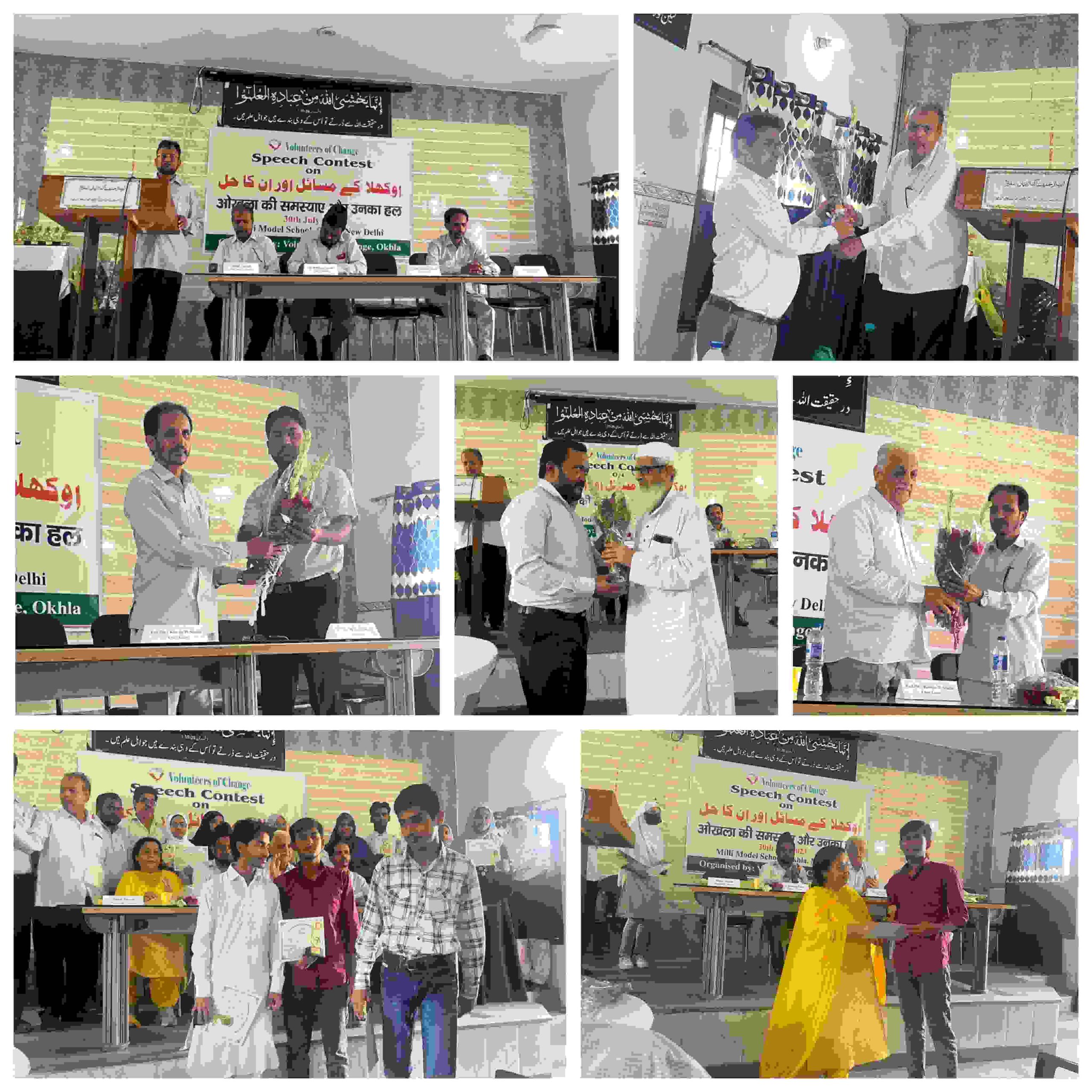دہلی(پریس ریلیز): سماجی بیداری کیلئے یہ بات اہم مانی جاتی ہے کہ لوگ تعلیم، صحت اور صفائی کے ساتھ آس پاس کے اخلاقی ماحول کو بھی بنائے رکھیں۔ اسی حوالے سے جامعہ نگر کی سب سے معروف سماجی تنظیم والنٹیئرس آف چینج( وی اوسی) کی جانب سے اہم تقریری مقابلہ بعنوان ملی ماڈل اسکول ابوالفضل میں منعقد ہوا۔