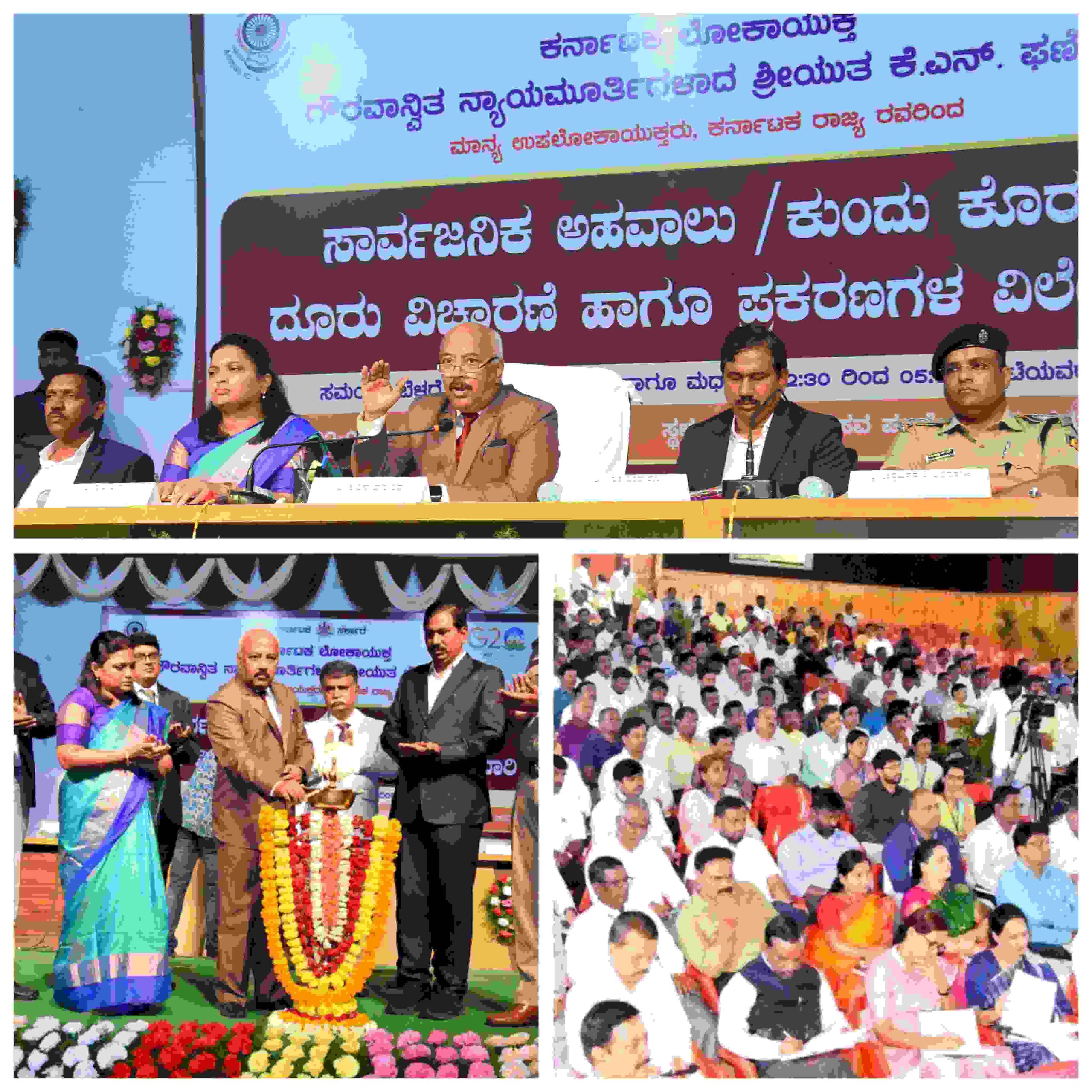 عوامی شکایات کی وصولی اوران کاحل :۔ ملیکارجن چٹگوپہ نے ڈپٹی لوک آیوکت کو شکایت پیش کی کہ میونسپلٹی نکاسی کا کام نہیں کررہی ہے، ڈپٹی لوک آیوکت نے متعلقہ کو 15 دنوں کے اندر کارروائی کرنے کی ہدایت دی۔ کرناٹک پرجاشکتی بیدر ایس سی، ایس ٹی نے شکایت درج کروائی کہ کمیونٹی بلڈنگ ناقص سطح پر کی گئی ہے۔ اُپالو ک آیوکت تحقیقات کرے گا اور ملوث افراد کے خلاف کارروائی کی جائے گی۔ جب کربسیاچنبسیا توگلور نے شکایت درج کروائی کہ وہ 11E کا نقشہ تیار نہیں کررہے ہیں، ڈپٹی کمشنر نے ہلسور تحصیلدار کو بلایا اور اسے 15 دنوں کے اندر تیار کرنے کو کہا۔ سنجیوریڈی ولد گنڈوریڈی نے اپنے کھیت کی 2 ایکڑ پہاڑی کو درست کرنے کے لیے اورا دتحصیل دفتر میں درخواست دی، لیکن ایسا نہیں کیا جا رہا تھا، اس لیے ڈپٹی کمشنر نے اور تحصیلدار کو بلایا گیااور اسے درست کرنے اور رپورٹ بھیجنے کی ہدایت کی۔ اُپالو ک آیوکت نے کہا کہ جب لوگ اُپالو ک آیوکت سے شکایت کریں گے کہ اور انصاف دلانے کی دہائی دیں گے توفوری کارروائی کی جائے گی۔