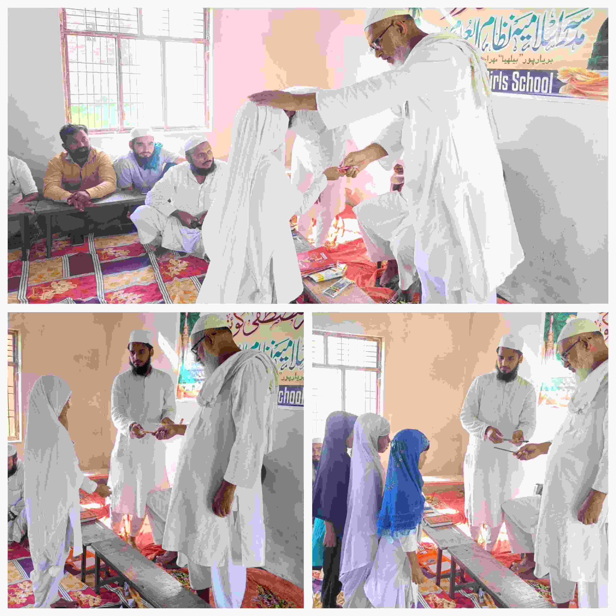 کوئز مسابقہ کو حاجی یونس صاحب اور مولانا محمّد مسلم صاحب کے دست مبارک سے انعام سے نوازا کیا گیا نیز سبھی حضرات نے بچیوں اور معلمات کو خوب خوب دعائیں دیں ۔