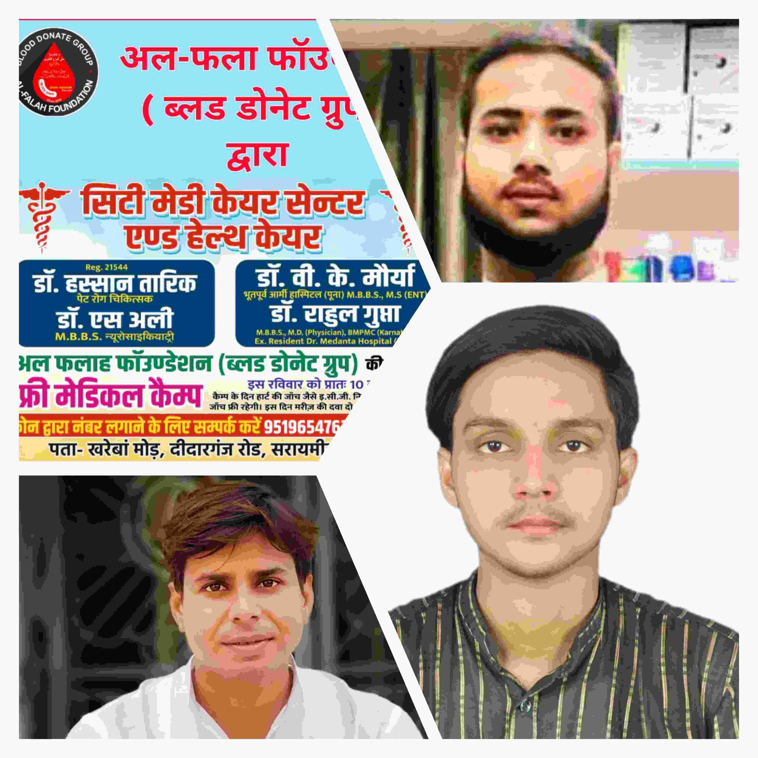 آعظم گڑھ،21 اکتوبر (نامہ نگار): الفلاح فاؤنڈیشن (بلڈ ڈونیٹ گروپ) کل اتوار کو صبح 10 بجے ایک فری میڈیکل کیمپ کا انعقاد کر رہی ہے۔ الفلاح فاؤنڈیشن کے سیف الاسلام سیفی نے بتایا کہ یہ کیمپ سٹی میڈی کیئر سینٹر اور ہیلتھ کیئر میں منعقد کیا جائے گا،جو کھریوان موڈ، دیدار گنج روڈ، سرائیمیر، اعظم گڑھ میں واقع ہے۔اس میڈیکل کیمپ کے دوران صحت کی مختلف خدمات مفت فراہم کی جائیں گی۔مریضوں کے لئے مختلف قسم کے ٹیسٹ مفت ہوں گے۔مریض مفت ای سی جی ٹیسٹ اور شوگر ٹیسٹ جیسی خدمات حاصل کر سکتے ہیں۔ مزید برآں، لوگوں کو دو دن کے لیے مفت ادویات بھی فراہم کی جائیں گی۔مریضوں کی سہولت کے لیے اس میڈیکل کیمپ سے فائدہ اٹھانے اور اپنا نمبر محفوظ رکھنے کے لیے الفلاح فاؤنڈیشن نے رابطہ نمبر بھی جاری کیا ہے۔ مریض درج ذیل نمبرز پر کال کر کے اپنا اپائنٹمنٹ لے سکتے ہیں۔ 9519654763