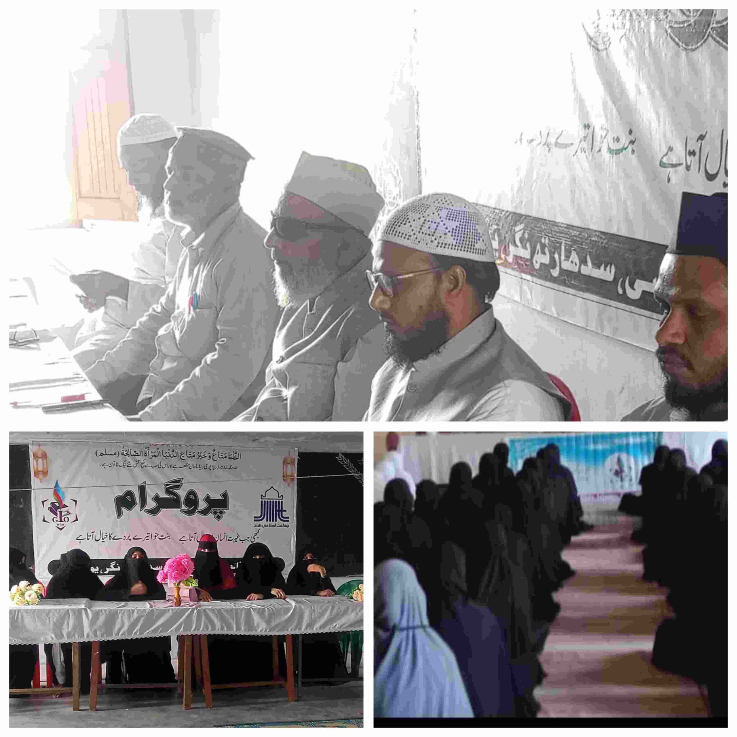 اس موقع پر عالمہ فاطمہ زہرہ فلاحی نے عصر حاضر اور پردہ عنوان پر اپنے خطاب میں پردہ کے بعض گوشوں پر کتاب و سنت کی روشنی میں شر ح و بسط سے روشنی ڈالی۔ اور پردہ کے تقاضوں اور اس کے حدود و قیود پر تفصیلی روشنی ڈالی۔ علاوہ ازیں شبینہ نے بھی سیرۃ النبی کے بعض اہم پہلو پر روشنی ڈالی۔ پروگرام کا آغاز نائلہ کی تلاوت اور مریم افشاں سمیہ خاتون کے ترجمہ سے ہوا۔ اور عالمہ شاہ جبیں نے افتتاحی کلمات میں امت کے خواتین کی صورتحال پر روشنی ڈالتے ہوئے پروگرام کے اغراض و مقاصد کو بیان کیا۔دوران پروگرام راضیہ، کوثر جہاں، اور زینت پروین کے نظموں سے خواتین و طالبات محظوظ ہوئیں۔ نظامت کی ذلت داری راضیہ خاتون نے انجام دی۔
