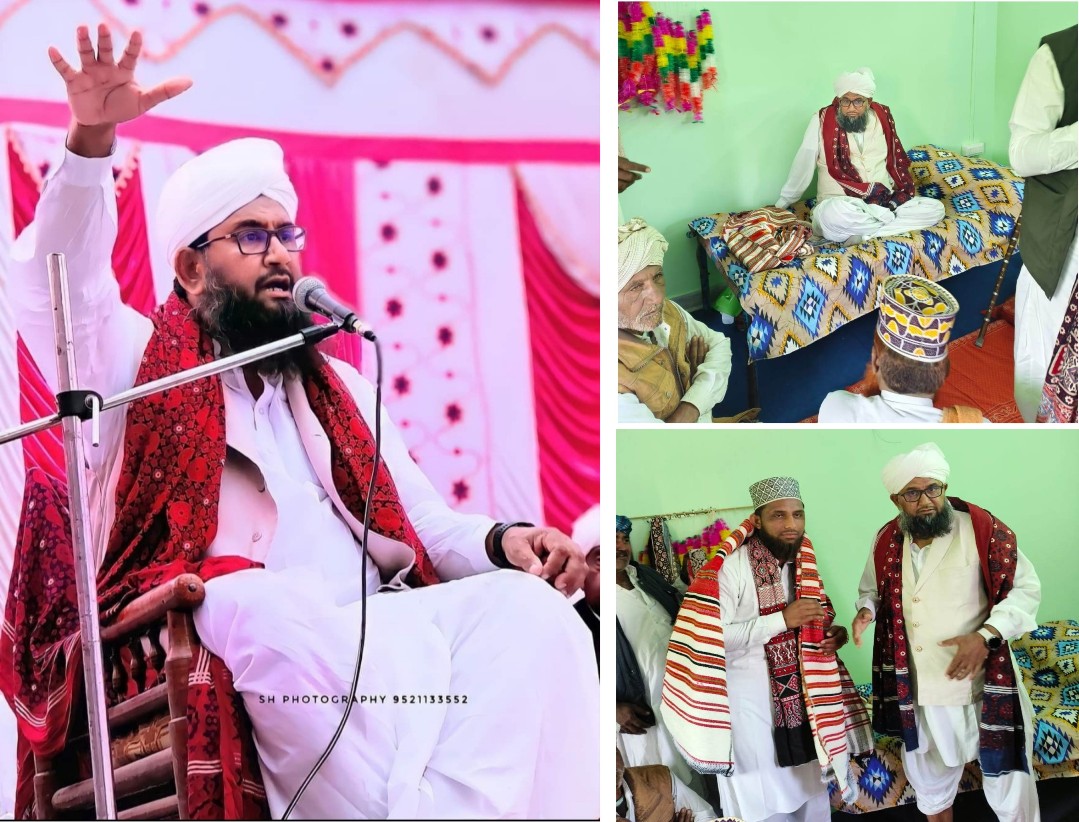 ہرپالیہ، باڑمیر (پریس ریلیز): دارالعلوم انوارِ مصطفیٰ سہلاؤ شریف، باڑمیر کی تعلیمی شاخ مدرسہ فیضانِ محمودی عمرانی محلہ، ہرپالیہ کے زیر اہتمام مسجد عمر بن خطاب میں منعقدہ ایک روحانی اجتماع میں خانقاہِ عالیہ بخاریہ کے صاحبِ سجادہ، نورالعلماء پیرِ طریقت حضرت علامہ الحاج سید نوراللہ شاہ بخاری مدظلہ العالی نے نماز جمعہ سے قبل خصوصی خطاب کیا۔