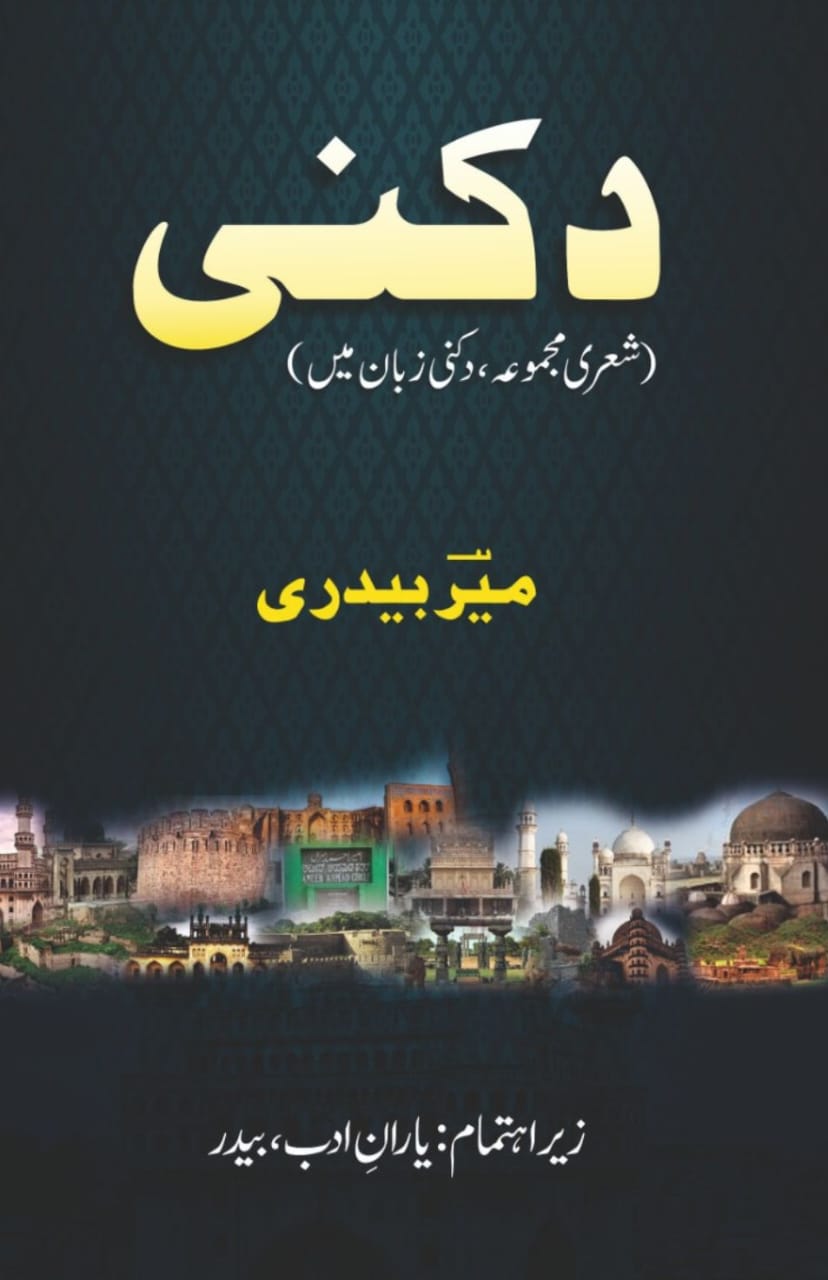 بیدر۔ 20مئی (پریس نوٹ): یارانِ ادب بیدر کی اطلاع کے بموجب بیدر (کرناٹک) کے ممتازادیب وشاعر جناب میربیدری کی دکنی شاعری پر مبنی شعری مجموعہ بنام ’’دکنی‘‘ جلد منظر عام پر آرہاہے۔جس میںحمد ،نعت ، منقبت ، غزلیں ، نظمیں اور بیت وغیرہ سارے کے سارے دکنی زبان میں ہیں۔ اورپڑھتے ہوئے بڑا لطف دے جاتے ہیں۔ چند اشعار سماعت کیجئے گا ؎