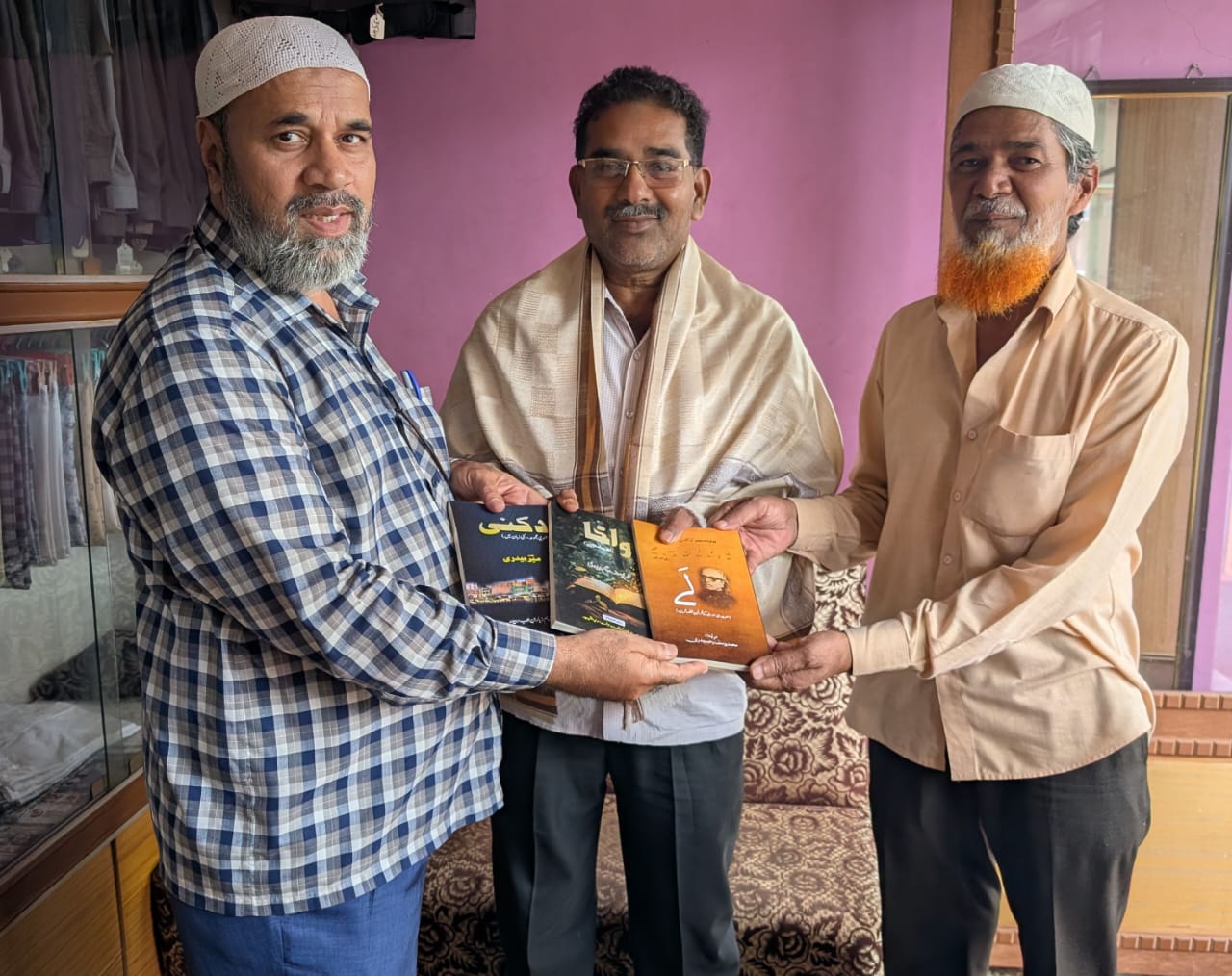 بیدر۔ 19؍جون (پریس نوٹ): بیدر ضلع کے ممتاز نقاد ڈاکٹر شمس الدین حکیم لیکچرر گورنمنٹ کالج چنچولی ضلع گلبرگہ کی آج شالپوشی کی گئی۔ ممتاز شاعر اور ادیب وصحافی جناب محمدیوسف رحیم بیدری نے ڈاکٹر شمس الدین حکیم کی شالپوشی کی اور اپنی تازہ ترین تین کتابیں دکنی شعری مجموعہ ’’دکنی‘‘ ، حضرت رشید احمد رشید ؔ پر مختلف تحاریر کامجموعہ ’’لَے ‘‘ اور افسانچوں کامجموعہ ’’واخا‘‘ انھیں تحفہ میں پیش کی گئیں۔ خصوصاً ’’واخا‘‘ پر ڈاکٹرشمس الدین حکیم صاحب نے مقدمہ لکھاہے۔ اور اس کتاب کے افسانچوں کوبے حد سراہاہے۔ اس موقع پر جناب جعفر بیگ اور محمدایوب علی ماسٹر نیڈس بھی موجودتھے۔