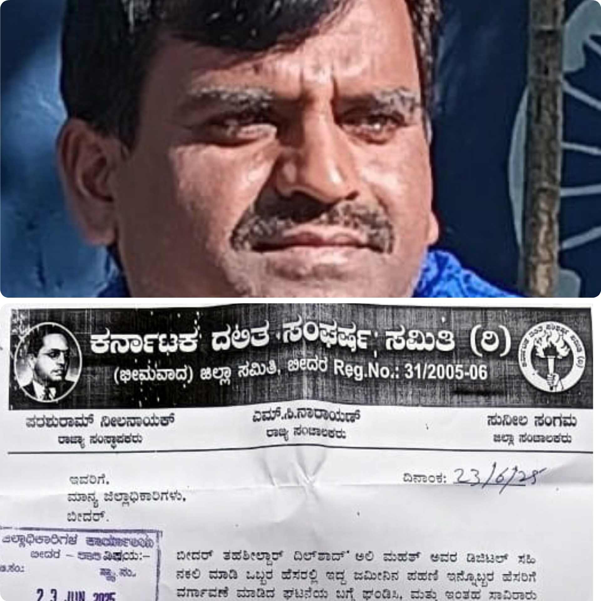 بیدر۔ 23؍جون (محمدیوسف رحیم بیدری): بیدر تعلقہ کے نندگاؤں کے رہائشی جگن ناتھ کے نام پر 8 ایکڑ 13؍ گنٹے اراضی تھی جو محمد اسماعیل کو منتقل کر دی گئی ۔ یہ بات سامنے آئی ہے کہ یہ سب کچھ خفیہ طریقے سے پیسہ کمانے کے لیے کیا گیا تھا۔ اسی طرح اراضی سروے نمبر24/6 میں کل 12 ایکڑ 21 گنٹہ اراضی ہے۔ اس میں 4 ایکڑ 8 گنٹے اراضی محمد اسماعیل ولد عبدالرزاق کے نام ہے۔ باقی 8 ایکڑ 13 گنٹہ زمین ہمارے والد جگن ناتھ کے نام ہے۔ لیکن 12؍ جون کو تحصیلدار کے جعلی دستخط کر کے ہمارے والد کے نام کی زمین بھی محمد اسماعیل کے نام شامل کر دی گئی۔ ایسے الزامات ہم سن رہے ہیں۔ کرناٹک دلت سنگھرش (بھیماواد) کمیٹی کے ضلع کوآرڈی نیٹر سنیل سنگما کی قیادت میں آج ڈپٹی کمشنر بیدر کو ایک عرضداشت پیش کی گئی جس میں مطالبہ کیا گیا کہ جو کوئی افسر نے اراضی منتقل کی ہے اس کو فوری طور پر معطل کیا جائے اور قصوروار تحصیلدار کو قانون کے مطابق سزا دی جائے۔یادداشت کی ایک کاپی اشاعت کے لئے پریس کو دی گئی ہے۔