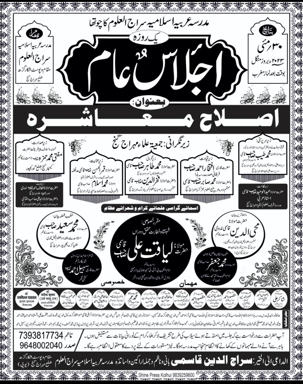 مدرسہ عربیہ اسلامیہ سراج العلوم کا جلسہ عام 30 مئی کو